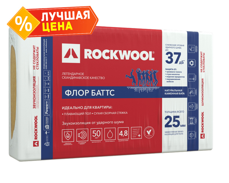 Жесткие гидрофобизированные теплоизоляционные плиты, изготовленные из каменной ваты на основе габбро-базальтовых пород. Плиты ФЛОР БАТТС предназначены для устройства акустических плавающих полов, а также для тепловой изоляции полов по грунту. Обладают динамическими характеристиками, отвечающими требованиям по защите от шума, и относятся к классу высокоэффективных звукоизоляционных прокладочных материалов.
